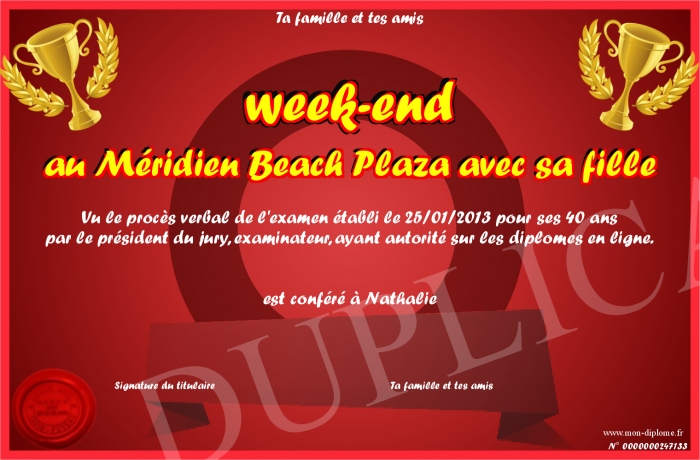 Envoyez par email votre week-end au Méridien Beach Plaza avec sa fille personalisé