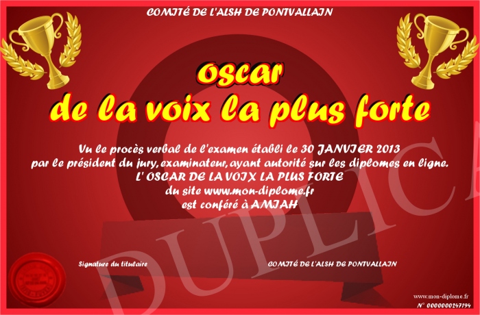 Envoyez par email votre oscar de la voix la plus forte personalisé