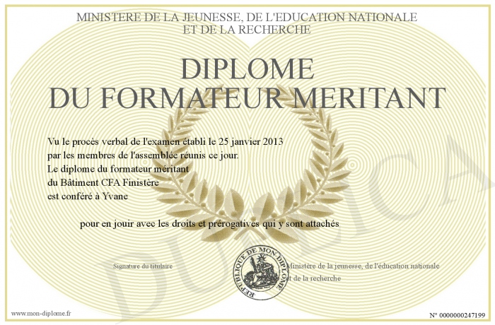 Envoyez par email votre Diplôme du Formateur Méritant personalisé