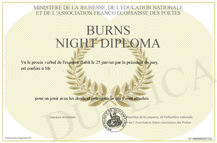 Envoyez par email votre BURNS NIGHT DIPLOMA personalisé
