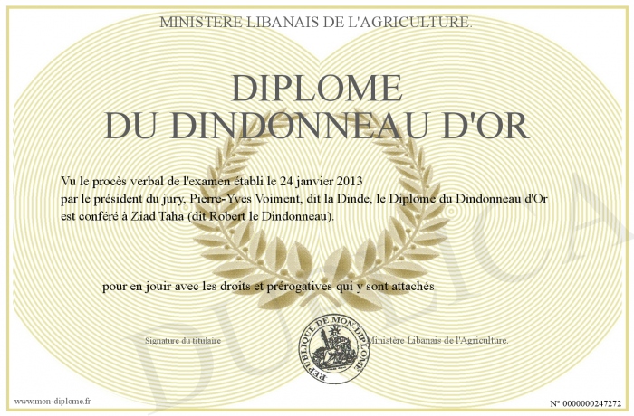Envoyez par email votre Diplôme du Dindonneau d'Or personalisé