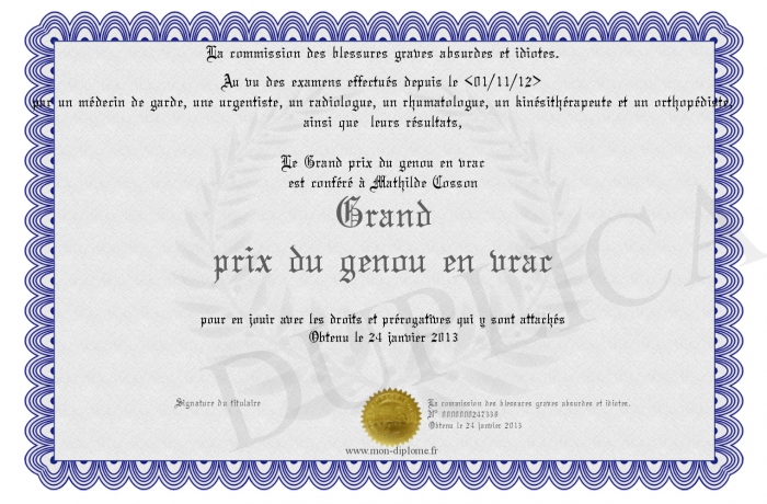 Envoyez par email votre Grand prix du genou en vrac personalisé