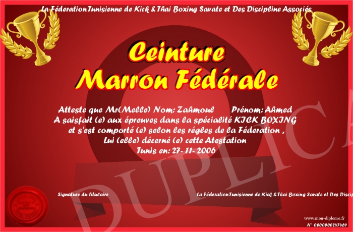Envoyez par email votre Ceinture Marron Fédérale personalisé