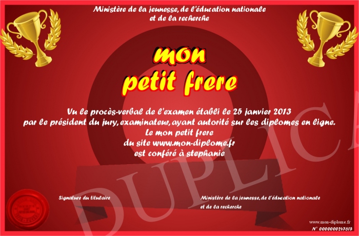 Envoyez par email votre mon petit frere personalisé