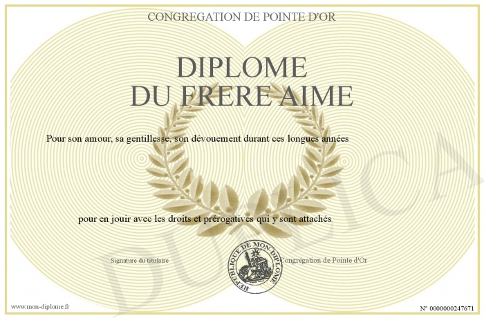 Envoyez par email votre Diplôme du Frère aimé personalisé