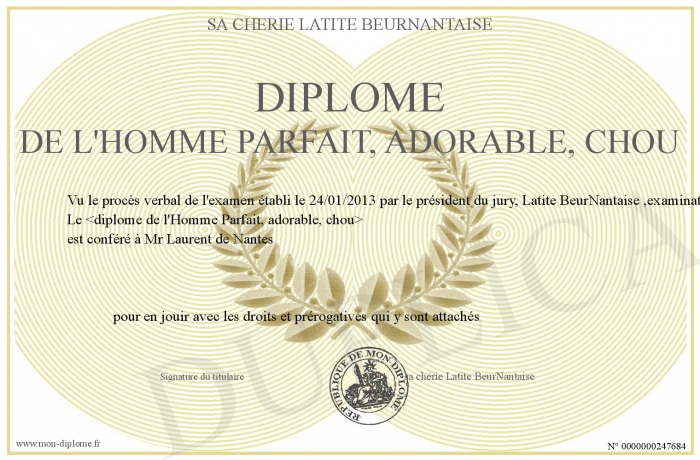 Envoyez par email votre Diplôme de l'homme Parfait, adorable, chou personalisé