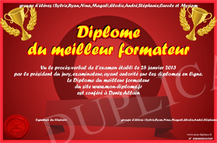 Envoyez par email votre Diplôme du meilleur formateur personalisé