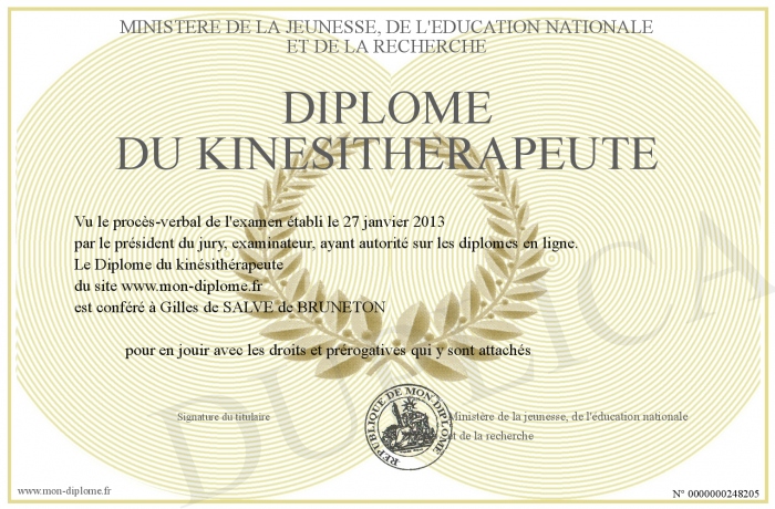 Envoyez par email votre Diplôme du kinésithérapeute personalisé