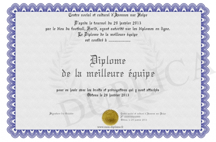 Envoyez par email votre Diplôme de la meilleure équipe personalisé