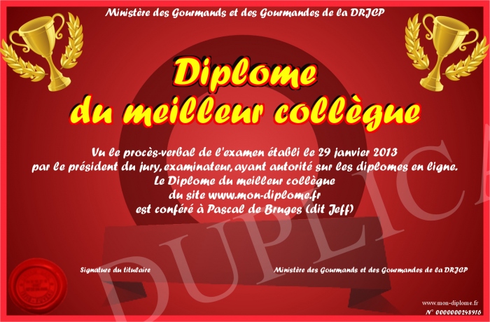 Envoyez par email votre Diplôme du meilleur collègue personalisé