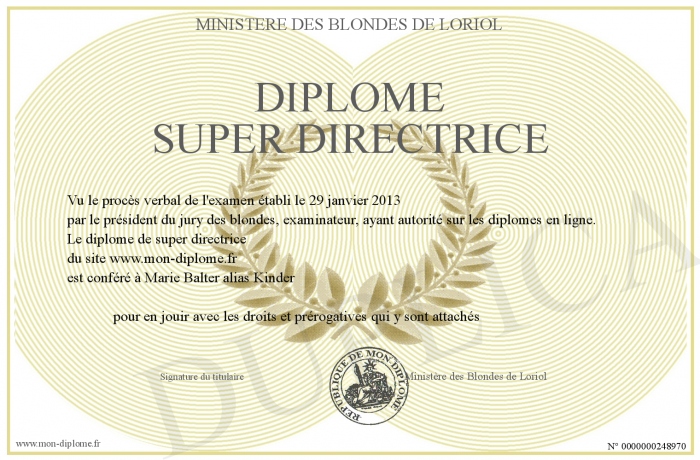 Envoyez par email votre Diplôme super directrice personalisé