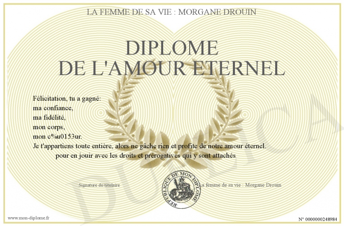 Envoyez par email votre Diplôme de l'amour éternel personalisé