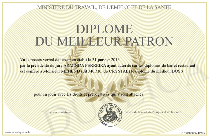 Envoyez par email votre Diplome du meilleur patron personalisé
