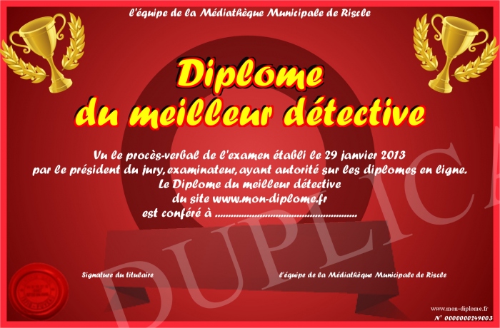 Envoyez par email votre Diplôme du meilleur détective personalisé