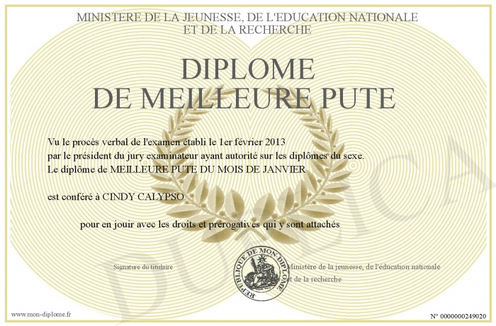 Envoyez par email votre Diplôme de MEILLEURE PUTE personalisé