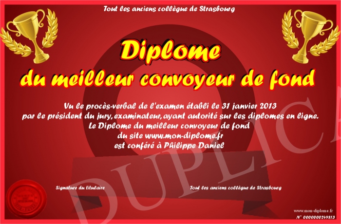 Envoyez par email votre Diplôme du meilleur convoyeur de fond personalisé