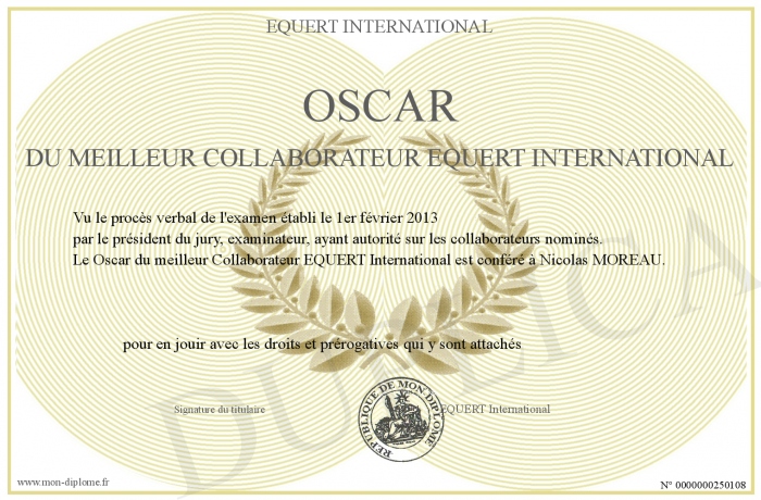 Envoyez par email votre Oscar du meilleur Collaborateur EQUERT International personalisé