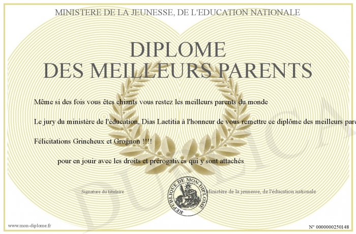 Envoyez par email votre Diplôme des meilleurs parents personalisé
