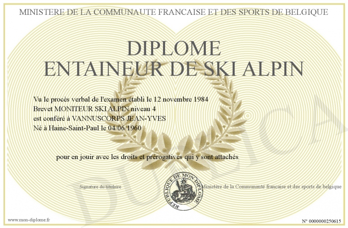 Envoyez par email votre Diplome Entaineur de ski alpin personalisé