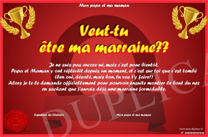 Envoyez par email votre Veut-tu être ma marraine?? personalisé