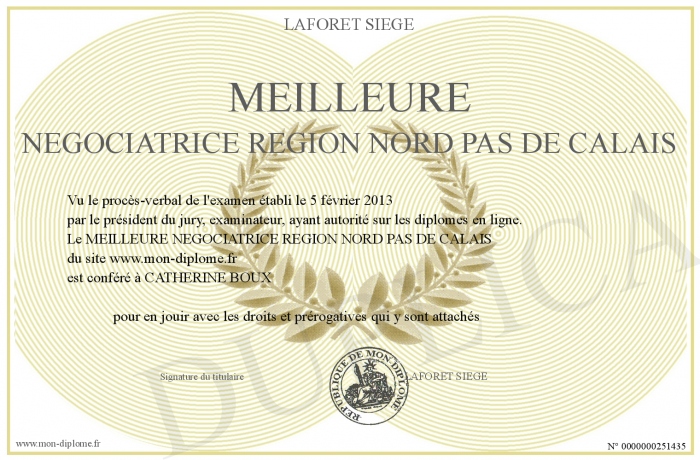Envoyez par email votre MEILLEURE NEGOCIATRICE REGION NORD PAS DE CALAIS personalisé