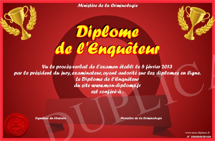 Envoyez par email votre Diplôme de l'Enquêteur personalisé