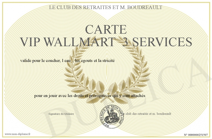 Envoyez par email votre CARTE VIP WALLMART 3 SERVICES personalisé