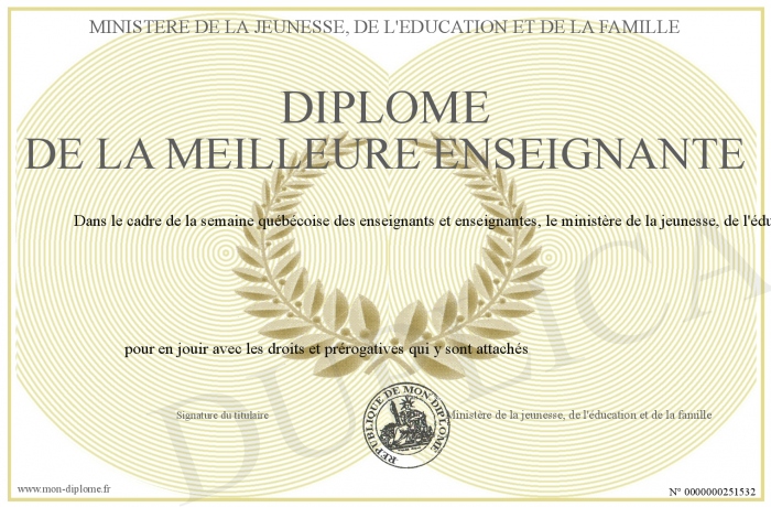 Envoyez par email votre Diplôme de la meilleure enseignante personalisé