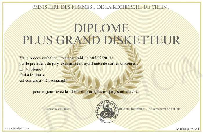 Envoyez par email votre Diplôme plus grand disketteur personalisé