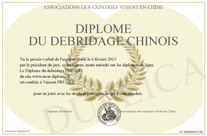 Envoyez par email votre Diplôme du debridage CHINOIS personalisé