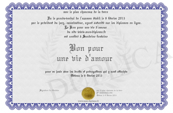 Envoyez par email votre Bon pour une vie d'amour personalisé