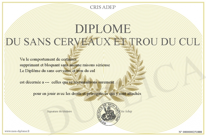 Envoyez par email votre Diplôme du sans cerveaux et trou du cul personalisé