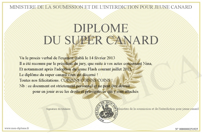 envoyé par le Ministère de la soumission et de l'interdiction pour jeune canard !