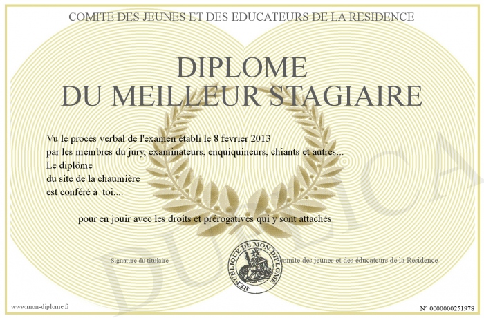 Envoyez par email votre Diplôme du meilleur stagiaire personalisé