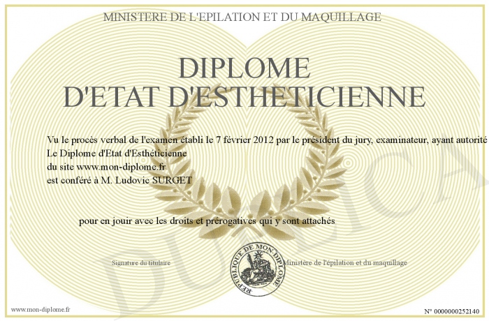 Envoyez par email votre Diplôme d'Etat d'Esthéticienne personalisé