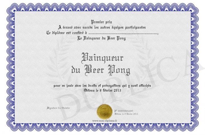 Envoyez par email votre Vainqueur du Beer Pong personalisé