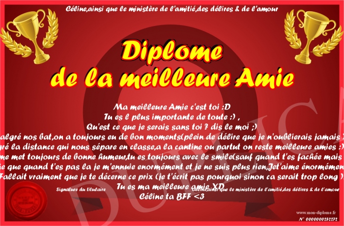Envoyez par email votre Diplome de la meilleure Amie personalisé