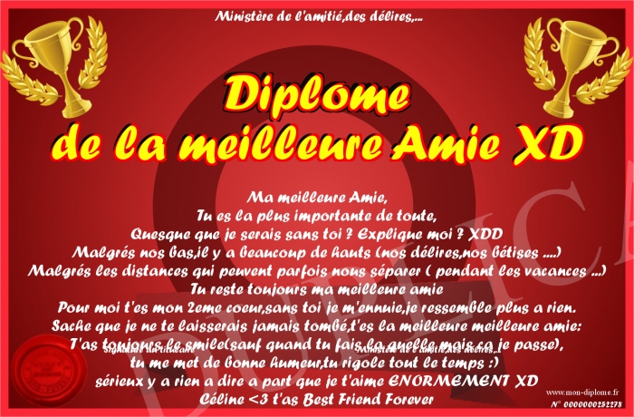 Envoyez par email votre Diplome de la meilleure Amie XD personalisé