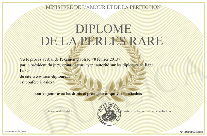 Envoyez par email votre Diplôme de la perles rare personalisé