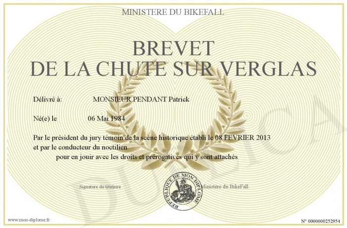 Envoyez par email votre BREVET DE LA CHUTE SUR VERGLAS personalisé