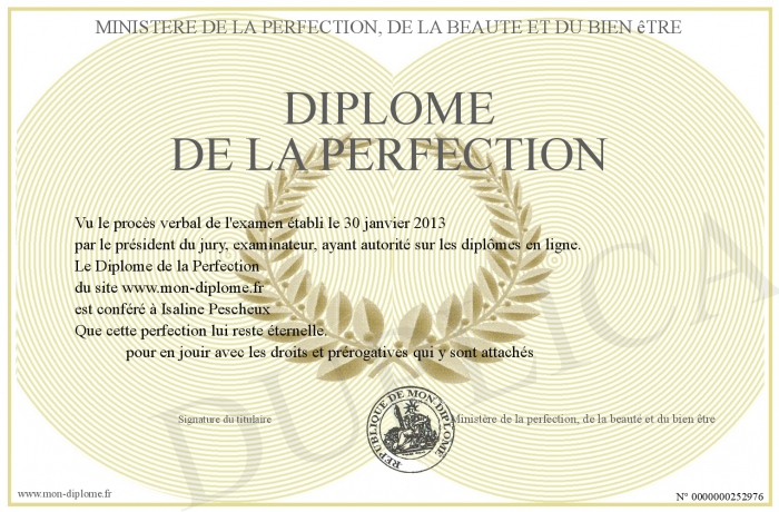 Envoyez par email votre Diplôme de la Perfection personalisé