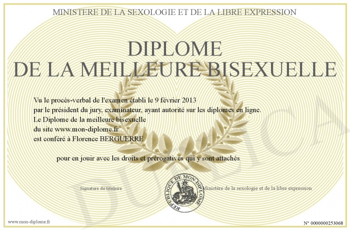 Envoyez par email votre Diplôme de la meilleure bisexuelle personalisé
