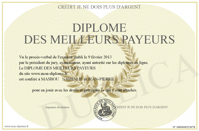 Envoyez par email votre DIPLOME DES MEILLEURS PAYEURS personalisé