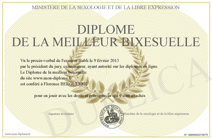 Envoyez par email votre Diplôme de la meilleur bixesuelle personalisé