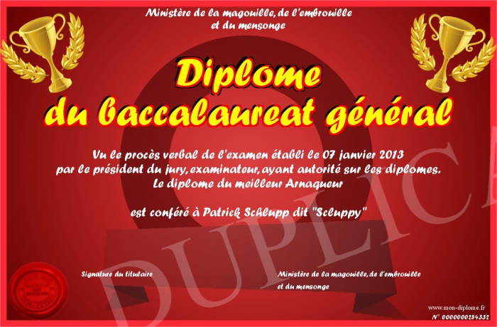Envoyez par email votre Diplôme du baccalaureat général personalisé