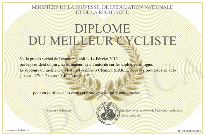 Envoyez par email votre Diplôme du meilleur cycliste personalisé