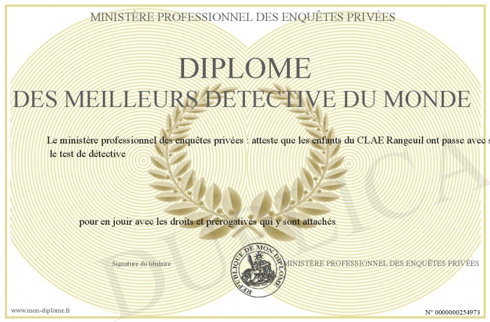 Envoyez par email votre Diplôme des meilleurs détective du monde personalisé