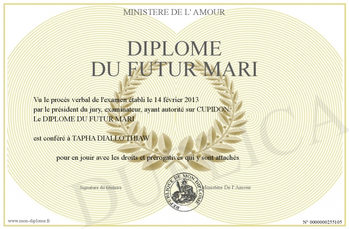 Envoyez par email votre DIPLOME DU FUTUR MARI personalisé