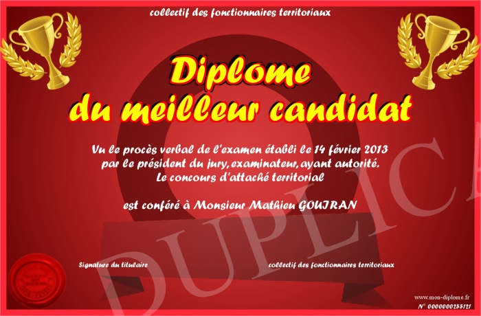 Envoyez par email votre Diplôme du meilleur candidat personalisé