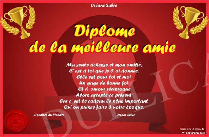 • Diplôme de la meilleure amie